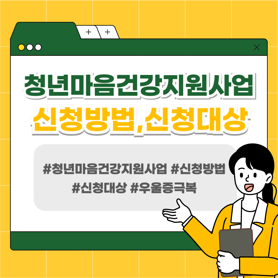 청년마음건강지원사업이란, 만 19세 ~ 34세 사이의 청년들이 정신적 질환으로 인한 어려움이나 여러가지 심리적 어려움을 극복과 정서적 안정을 찾을 수 있도록 도와주고 지원해주는 프로그램이다. 이 사업의 대상은 앞서서 말했듯이 청년들이 대상이며 취업, 학업 스트레스, 인간관계 문제, 사회적 문제 등으로 인해 심리적 불안을 겪는 청년들에게 전문적인 심리상담 서비스를 제공한다.